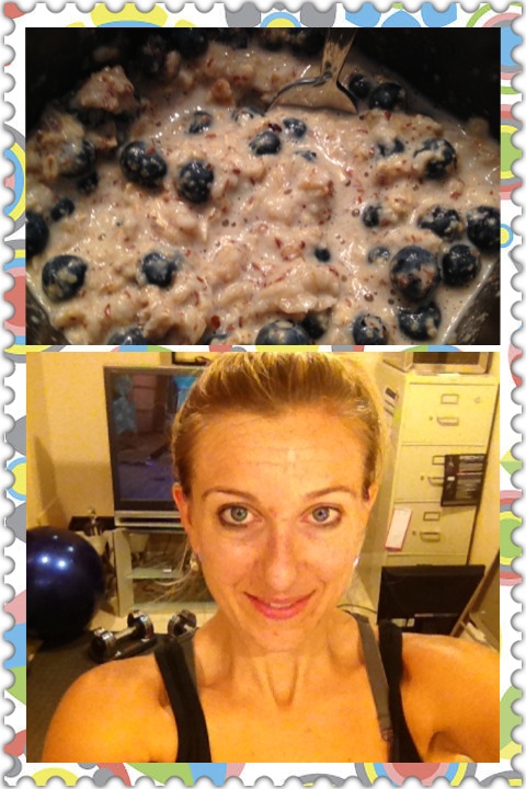 There is nothing like starting of your 4th of July with a great sweat inducing workout and a Chocolate Shakeology Milkshake! I’m absolutely soaking this one up! I was up at 5:15 am this morning to squeeze in my workout before my family wakes up! I am in the last phase of Chalean Extreme so today’s workout was Lean Circuit 2 and I threw in the extreme abs as well. This workout is all for your shoulders and back. What I like to call the glamour muscles! My shoulders are so weak so lifting more than 15 lbs is a struggle. But I pushed through and did my best. Dripping sweat by the end of the workout but loving it! After my workout I felt that I earned that big bowel of oatmeal that I crave each morning! I always mix in my protein powder to give it a well rounded balance of protein and carbs! So I should be good for the next 2 1/2 to 3 hours. At that point my snack comes into play! This am it’s 1 apple and 14 raw unsalted almonds! Lunch is a 4th of July Shakeology Milkshake and then off to the parents.