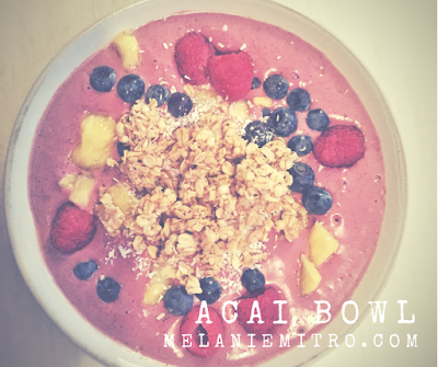 Then top with a purple container of mixed fresh fruit, the 1/2 container of unsweetened coconut flakes and granola and enjoy!!!