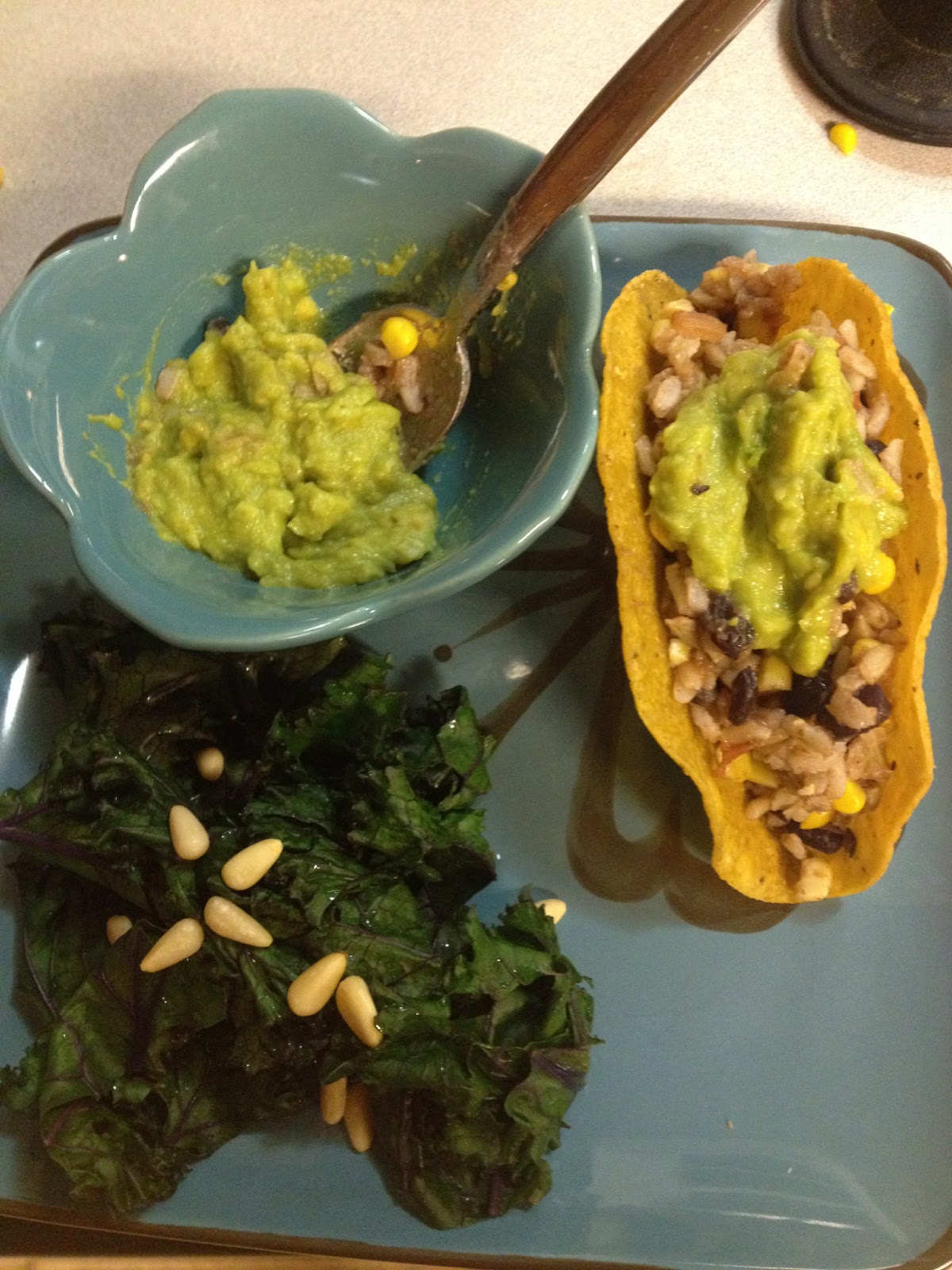 Now you can take the rice and black beans and add 1/4 cup fresh corn, 2 tbsp natural salsa, 1/4 cup guacamole, 1 6 inch corn tortilla, and some steamed veggies for a complete and filling vegetarian dinner! You can turn any non healthy eating into a healthy one with this meal!!! I promise!!!