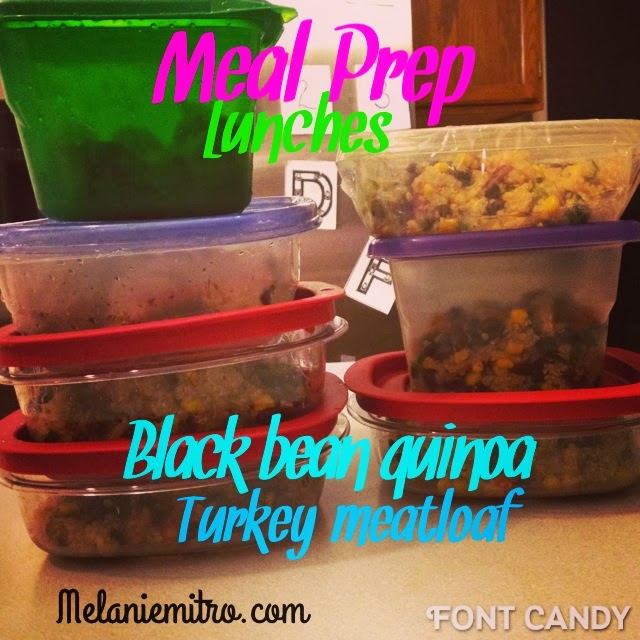 For lunches this week I decided to make the Black Bean Quinoa which is actually an appetizer but I measured out 1 1/2 cups per serving. I also made some Turkey Meatloaf for dinner and portioned the extra as lunches as well. Between those two we have enough for lunches this week. If we run out or the kids eat one of our containers then we can fall back on the pinto beans and rice!