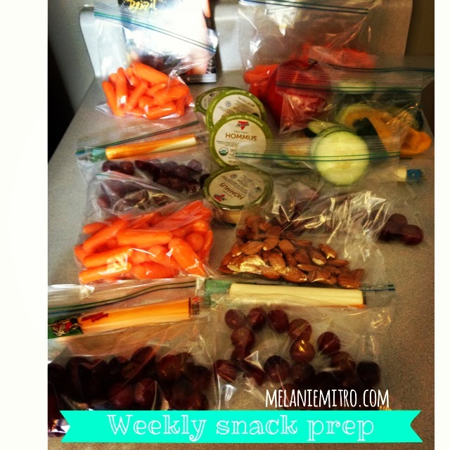 For snacks I counted out 20 grapes as a serving and put into ziplok bags. I paired that with a cheese stick as a snack option for my husband. I made 5 of those for the week.