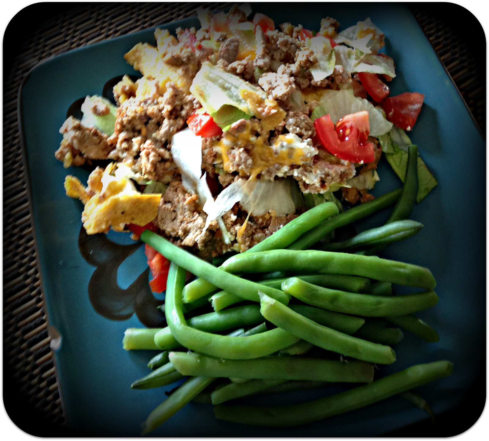 I seriously can’t get enough of it. So while I was riding bikes with my sister in law and kids we were talking about dinner ideas. She was giving me the scoop on this taco casserole that she makes that her husband actually requests that she make. I decided that sounded amazing but I was going to put my own healthy spin on it! (I’m sure she is laughing at me now!! LOL)