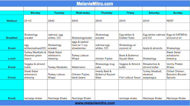 I have been getting a lot of questions about my Hammer & Chisel, 22 Minute Hard Corps Hybrid I basically created on my own! No I did not give myself a REST day this week! Yes that is a BIG NO NO I know, but we had Cinco De Mayo and Mother’s Day and I did have a few treats so I did cardio to make up for it. I know that is not the same but it made me feel like at least I broke even.
