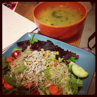 Lunch today was really yummy because I had the warm Hearty Miso Soup and the refreshing Microgreens salad! Lots to eat and lots of energy from it!