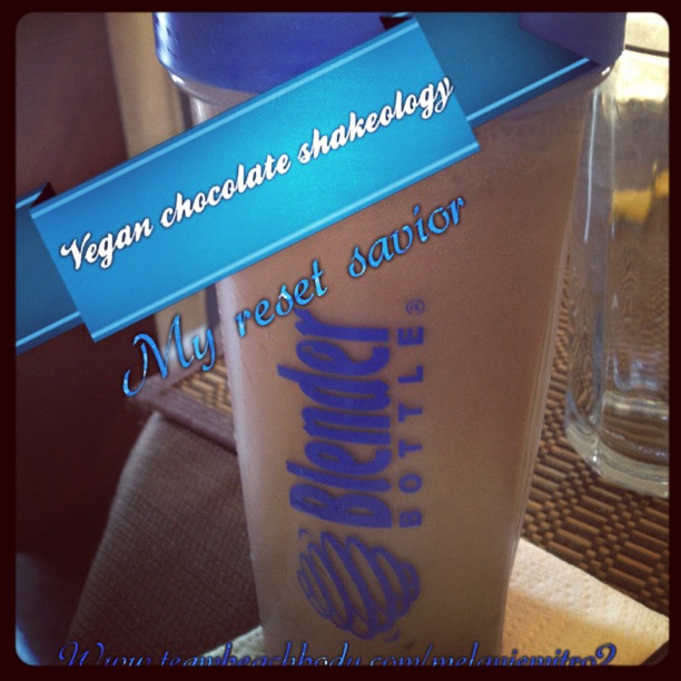 Now it’s back to work! In between calls I drink my Alkalinize and another full glass of water with my mineralize and it’s snack time!!! Of course since I am in a hurry and don’t want to be munching in people’s ears I grab my Vegan Chocolate Shakeology and BOTTOMS UP!!!