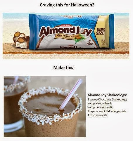 So most of you know that Shakeology is my go to. The simple fact that Shakeology helps to curb my cravings has been reason enough for me. Plus the fact that it truly tastes amazing and doesn’t make me feel guilty for it! Here are a few of my favorite Halloween Shakeology Recipe. You might think I’m crazy and that nothing could possibly taste as good as the candy bar, but try it! I promise you won’t regret it!!!!