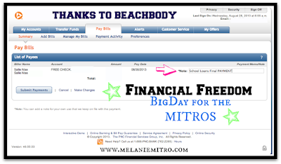 -Paid off my student loans which we were going to originally pay off until Landon went to high school.
