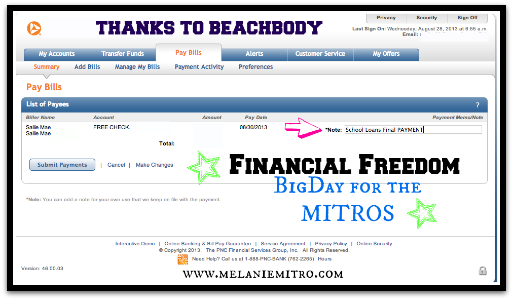 -Paid off my student loans which we were going to originally pay off until Landon went to high school.