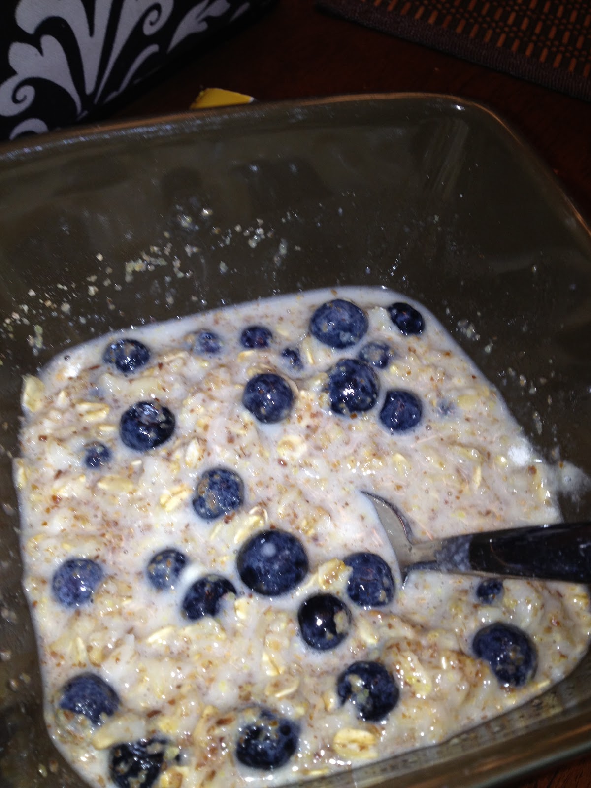 - Pour over cooked oatmeal, then add 1 tbsp flaxseed and wheat germ and berries. Stir and enjoy!!!!