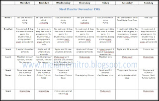 Friday is flow and hard core abs- I’m not a huge fan of yoga so I tend to do cardio, so I’ll bust out some Turbofire to combat the Turkey day pumpkin pie that I WILL have!!