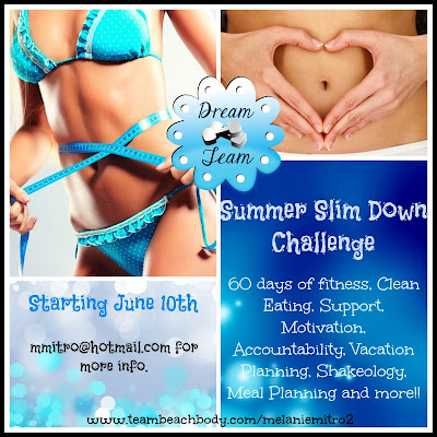 On June 10th I am kicking off the Summer Slim Down Challenge. My goal is to help you kick the excuses, end emotional eating, arm you with the tools to be successful and teach you how to make it a lifestyle and not a crash diet. It’s a kid tested and husband approved approach to weight loss and living a healthy and fulfilling life! My mission is to set you up with a fitness program that is not too easy and not too hard but just right for your ability level. Then, I create a customized meal plan WITH you so that you can learn how to plan out your meals, prepare healthy snacks, give you recipes, tips, motivation and accountability to start and complete a fitness program! I call it a CHALLENGE GROUP!!! It’s not a competition to see who can win or lose the most weight but yet it’s an accountability group. It’s a place that you can feel safe, you can feel comfortable talking about your struggles and triumphs, where you won’t be judged for making a mistake instead we encourage you and celebrate all the victories along the way!