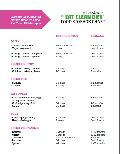 Tosca Reno has an amazing website called the Eat Clean Diet and just this morning she shared these great tips with all of her readers! I was so pumped that I just had to share them with you. Not only do we always wonder how long food is good for but also what are the staples when it comes to clean eating and what foods should we eat and how many times a day!!! Check out these hand tips to keep you on track and to ease the anxiety of eating the right kind of foods to get the results that you want!!!!!