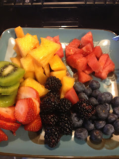 Woke up at 6 am this morning and spent some time checking in with my challengers and working on a customized meal plan for them. By the time the kids got up it was time to make my fresh fruit plate!
