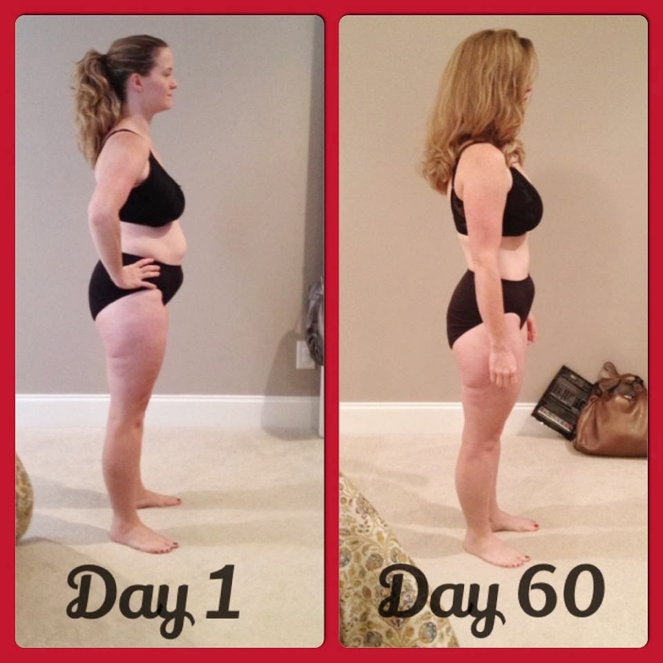 She chose to do Turbofire as her workout and she was replacing 1 meal a day with Shakeology for the past 60 days. She committed to following the curriculum of the 30 day clean eating and shakeology group and got amazing results! It isn’t rocket science, it’s not a starvation diet, but it’s eating 5-6 small meals per day, eating normal food. The key is to pay attention to the portion size, the type of foods that you are eating, drinking enough water and regular exercise. There are foods that you limit and stay away from but I have so many replacements and recipes to share with you that you won’t even notice that you aren’t eating your previously fat loaded foods now!